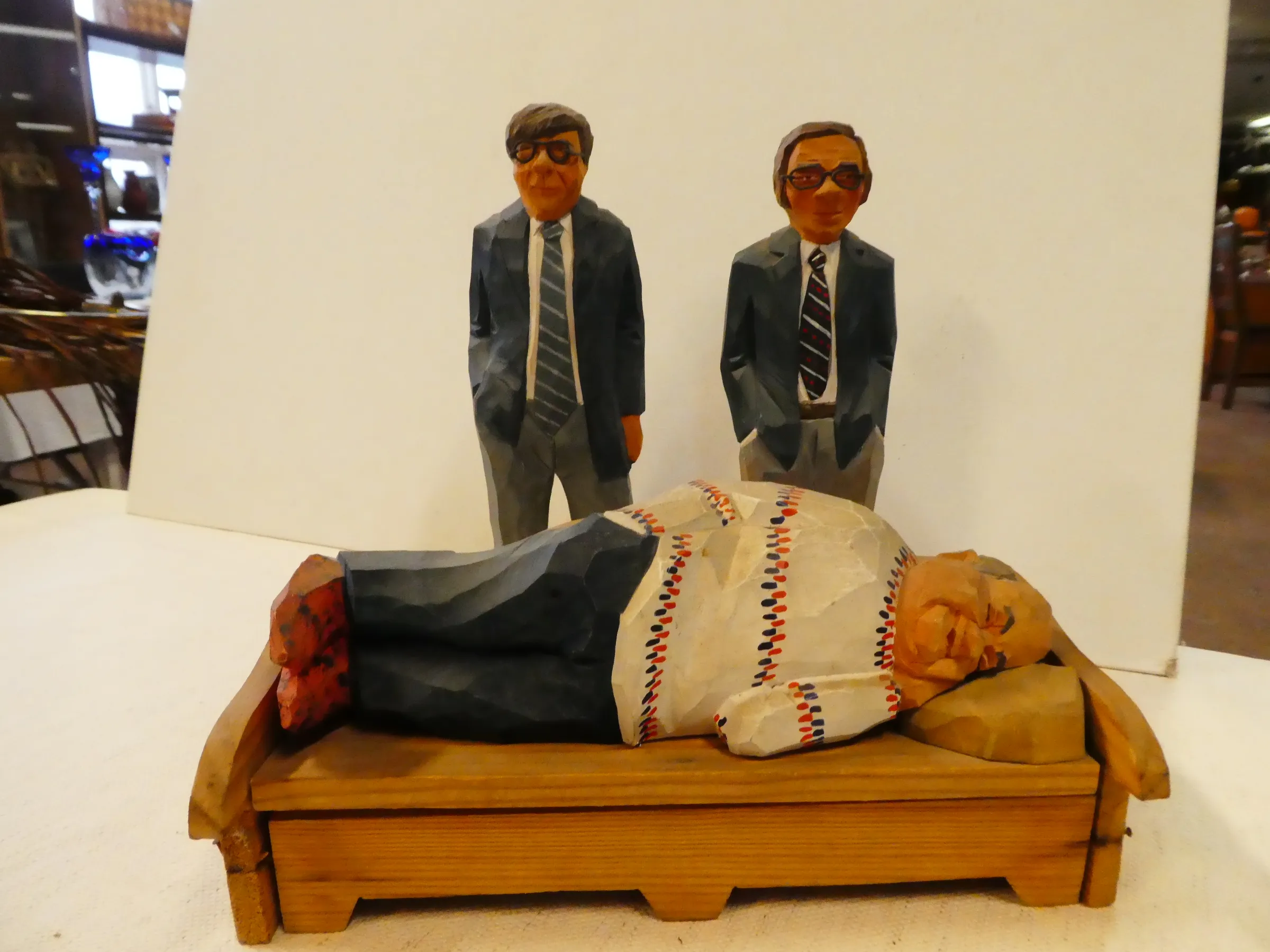 70. Handskurna träfiguriner h:23 cm 3 delar