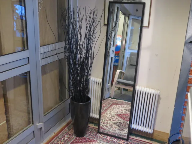 4. Helkropps spegel svart ram/golvvas m dekorativa kvistar