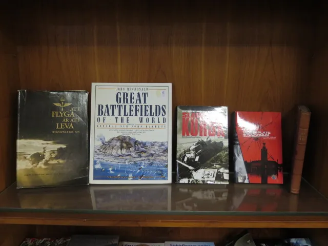 Hylla samling intressanta krigsböcker