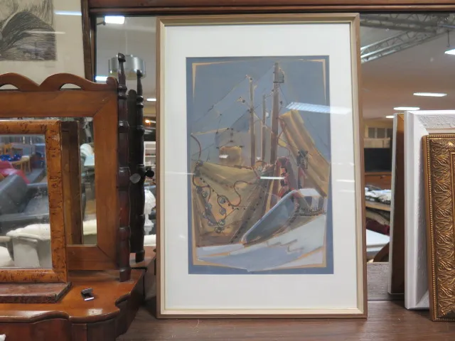 575. Inglasad akvarell sign Max Larson b:42 cm