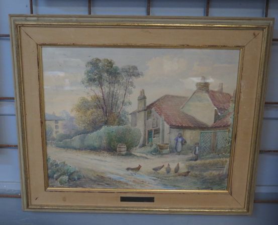 Inglasad akvarell sign. John Frank Swingler b:65 cm