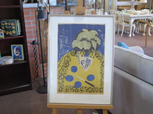 Inglasad färglitografi sign Johan Lindström 35/150 b:55 cm