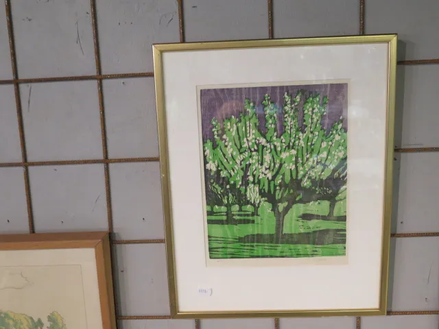 415. Inglasad litografi sign M Carlstedt b:38 cm