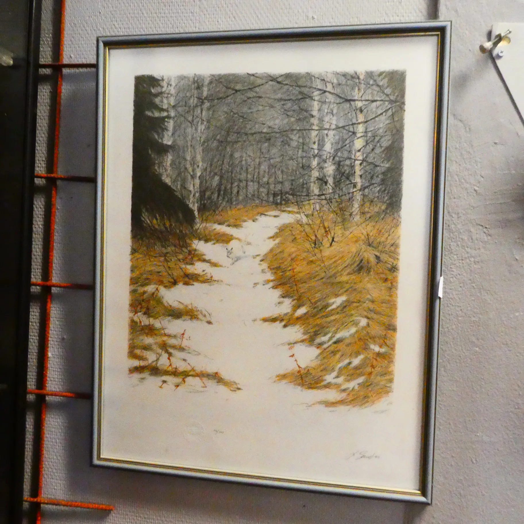 Inglasad litografi sign Sandén b:60 cm