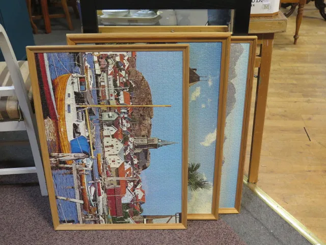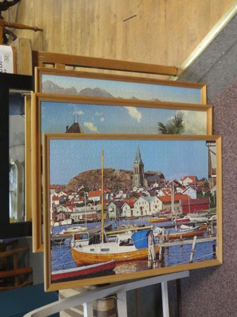 345. Inramade pusseltavlor 3 st.. b-73 cm