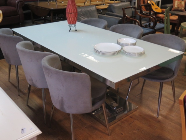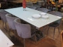Italienskt matsalsgrupp bord glasskiva på kromad benställning.. 6 stol