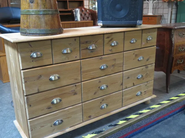 469. Köpmansdisk furu 15 lådor l:135 cm