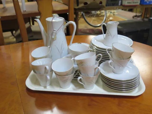 343. Matsalsgrupp porslinskåp spröjsat vitrin bord 2 ilägg 6 stolar