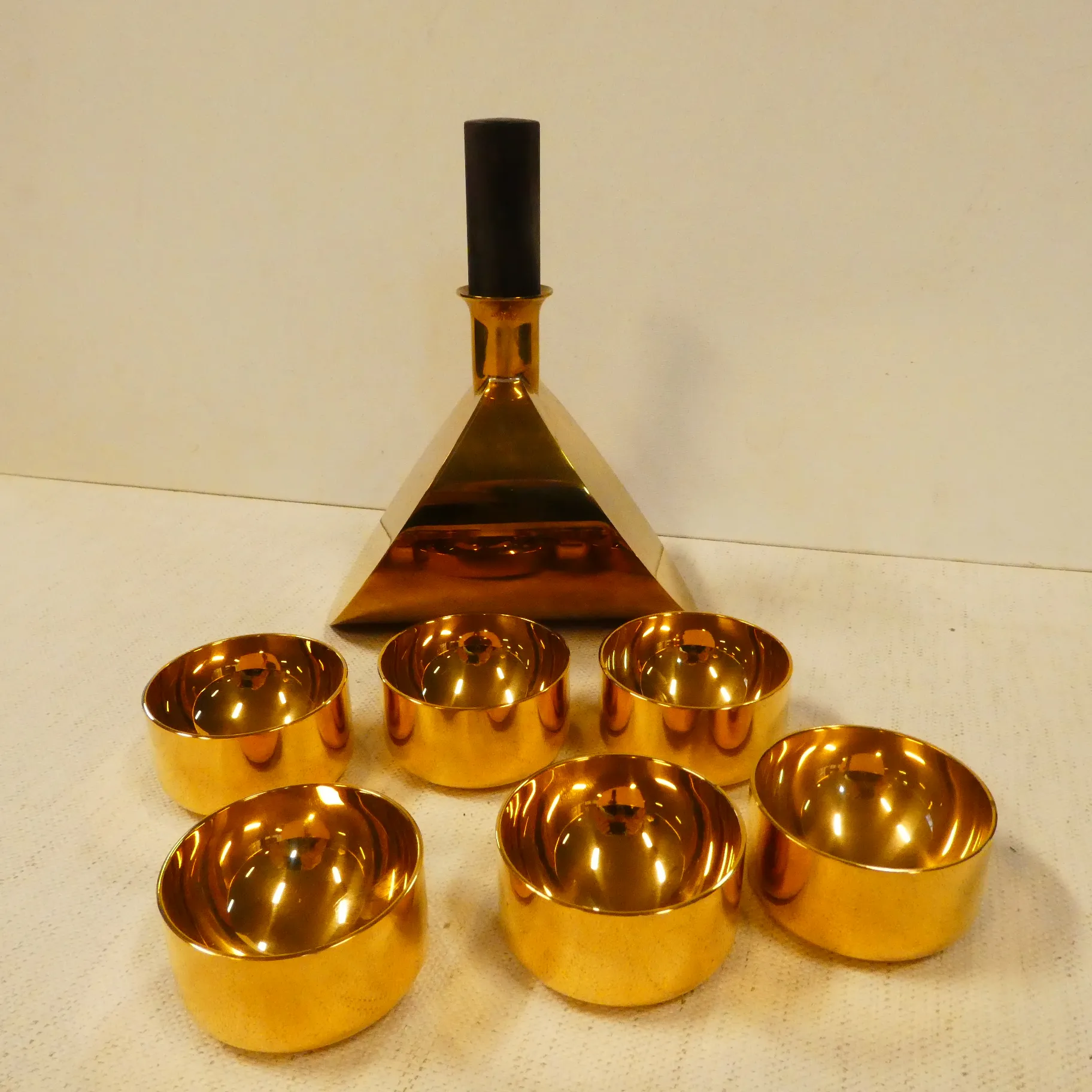 Karaff "Vicke" samt bägare 6 st förgylld mässing Pierre Forsell Skultuna