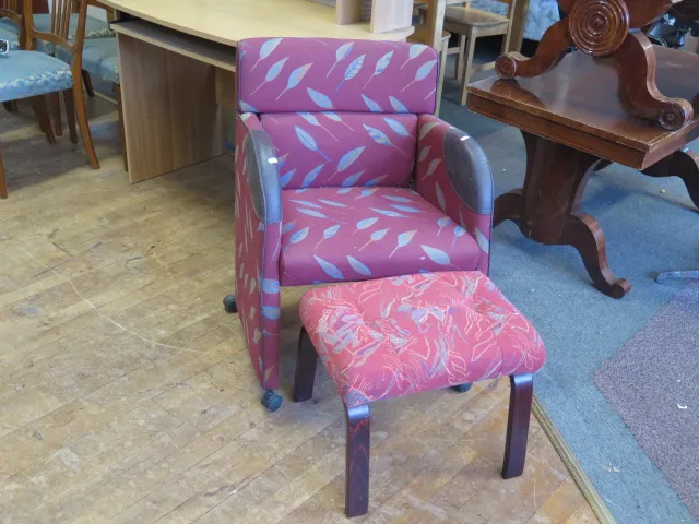 357. Karmfåtölj m fotpall
