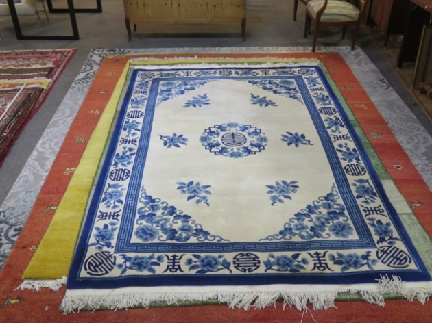 412. Modern matta "Blue Mosque" Patchwork Handknut. 195x310 cm