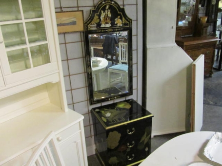 777. Kinesisk lackerad hallmöbel 3 lådig byrå fasettslipad väggspegel