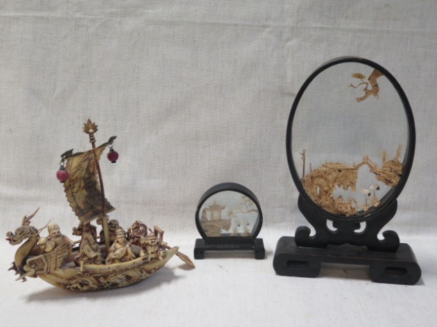 139. Kinesiska korkdioramor h:10-25 cm/ Djonk l:18 cm