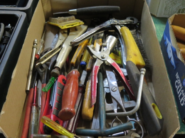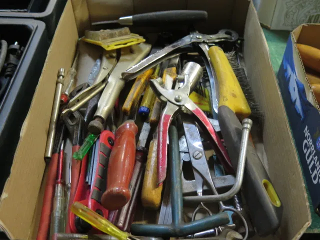 543. Låda mejslar.. hammare insexnycklar mm