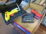 Låda 3 st hylsnyckelsatser mindre diemensioner samt limpistol