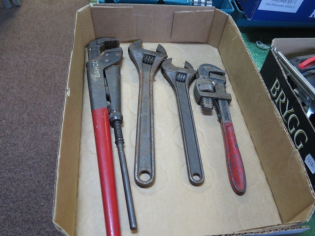 Låda Bahco rörtång, skiftnycklar
