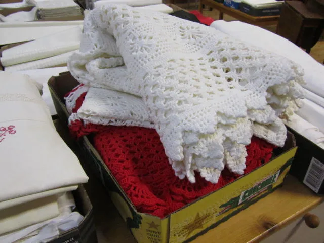 519. Låda blandat virkat
