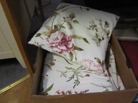 Låda blommiga textilier.. gardiner..
