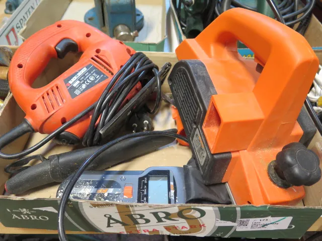 838. Låda BoD elsticksåg.. Seöekta elhyvel