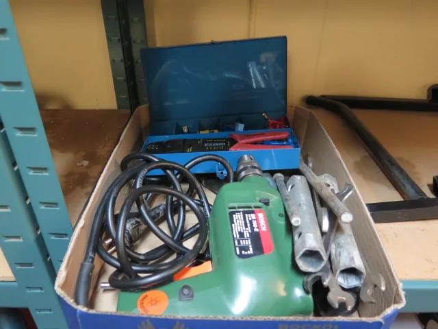 Låda Bosck slgborrmaskin.. skiftnyckel mm verktyg