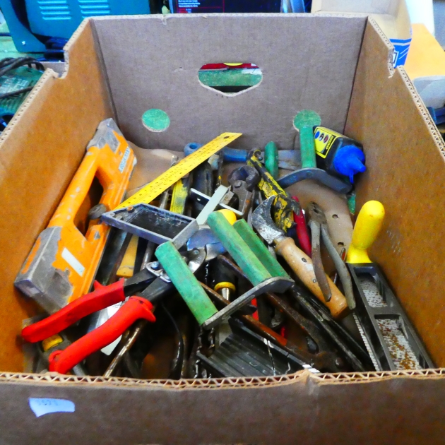 620. Låda div. verktyg.. blandad kompott