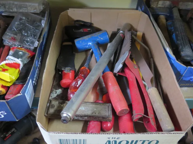 Låda div. verktyg.. filar,, vinkelhake.. mejslar mm