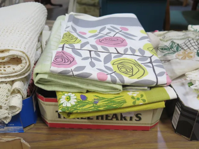 354. Låda dukar mm