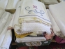 Låda dukar.. broderade virkade linnedukar mm