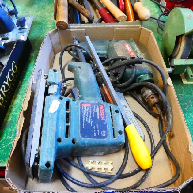 625. Låda elhandmaskiner mm