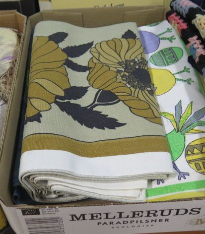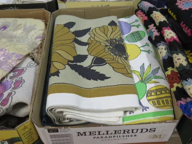 433. Låda 2 st virkade filtar i mormorsrutor..
