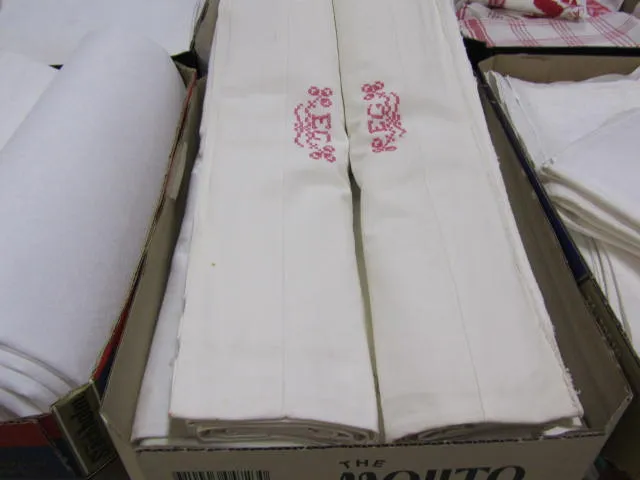 Låda fina lakar 6 st bl.a monogrambroderade..