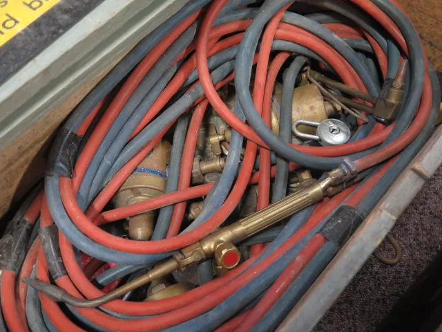 Låda gassvetsutrustning.. munstycken.. gasklockor mm