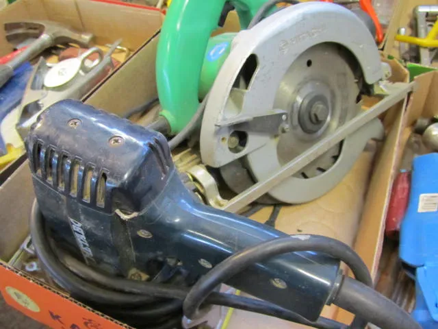 837. Låda Hitachi cirkelsåg.. putsmaskin