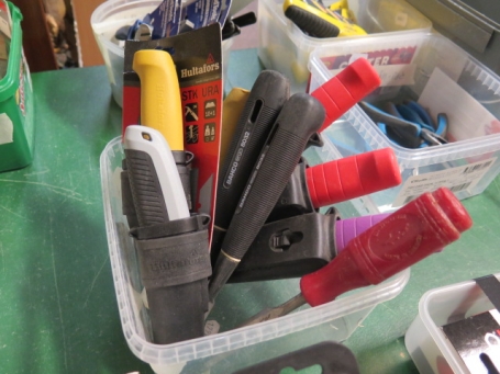 Låda knivar för snickare.. mattläggare mm