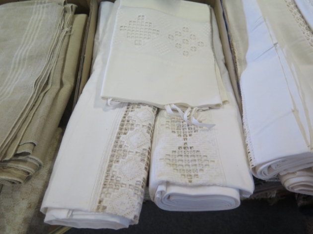 436. Låda Linnedukar