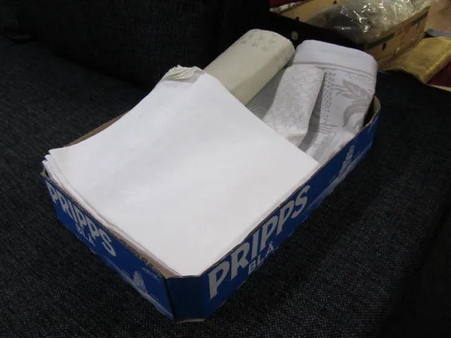 Låda linnedukar servetter