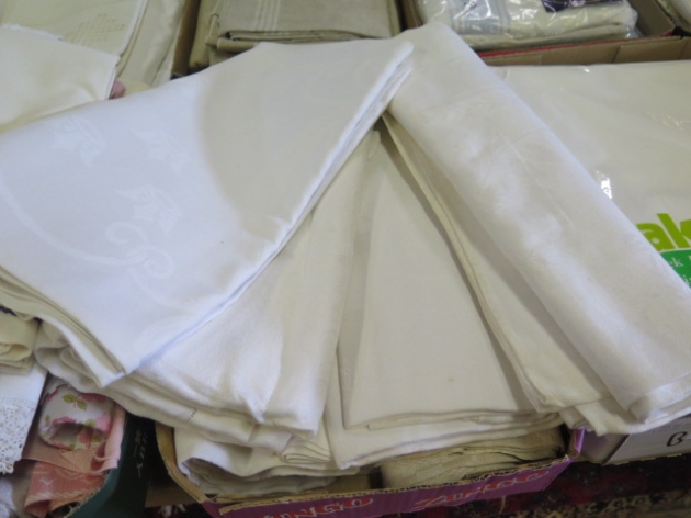 425. låda linnedukar.. mönstrade mm