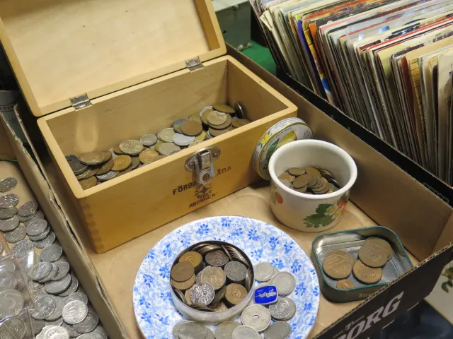 Låda myntsamling...
