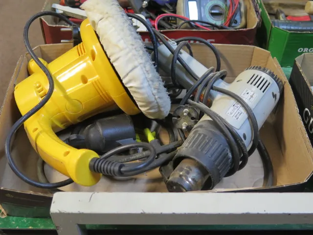 509. Låda polermaskin.. varmluftspistol