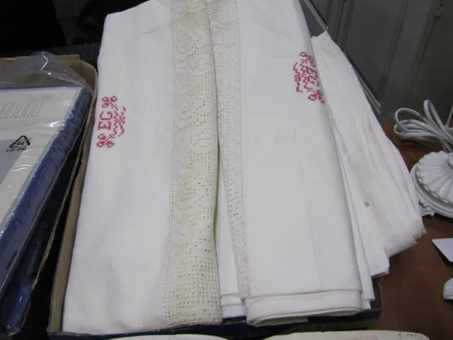 539. Låda spetsvirkade lakan mm