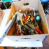 Låda verktyg.. hammare vattenpass.. plåtsax mm