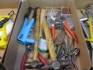 843. Låda verktyg.. hammare.. popnittång .. plåtsax mm
