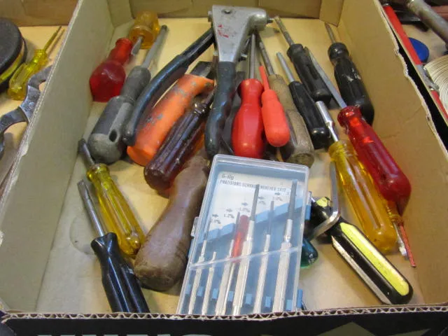 835. Låda verktyg.. meislar täljkniv mm