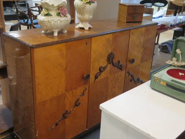 306. Linneskåp björk 30-tal hyllinredning 160x120 cm