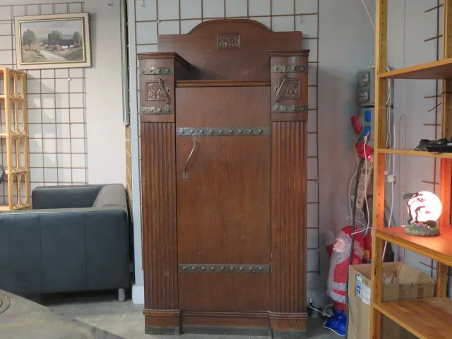 Linneskåp ek jugend kopparbeslag 1920-tal 95x55x180 cm