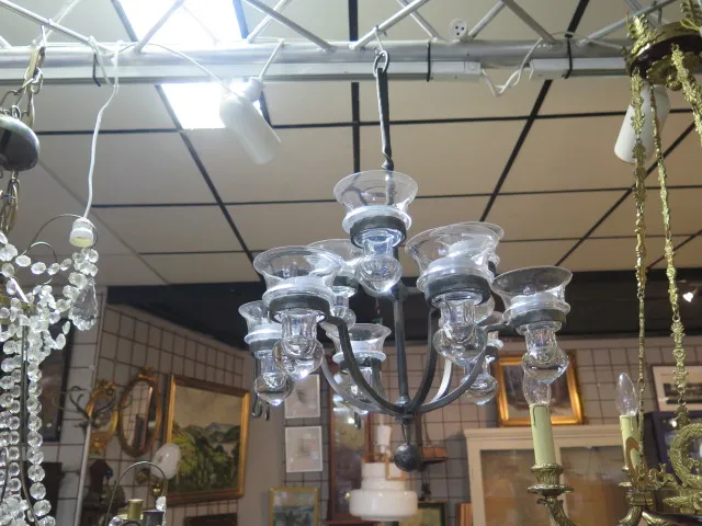 595. Antik 6 armad fotogenlampa majolika elekrifierad d:50 cm