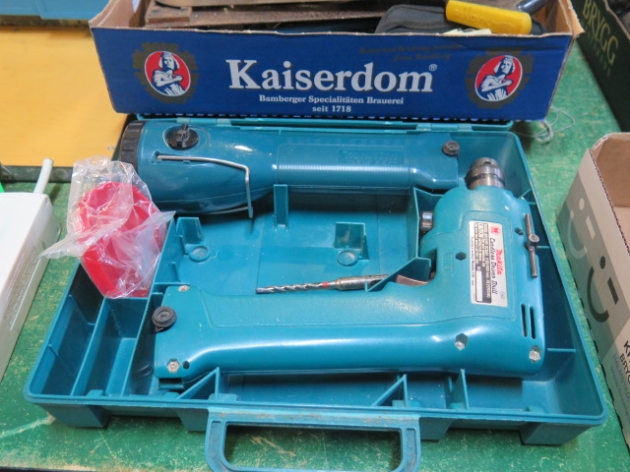 796. Låda Bosch slagborrmaskin, cirkelsåg, elsticksåg
