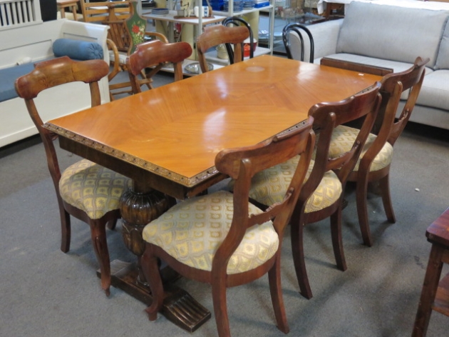 253. Matgrupp bord chippendale 6 st äldre stolar