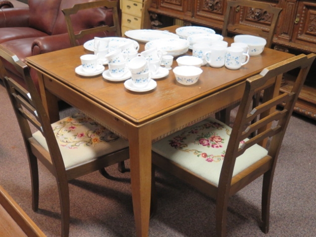 319. Matgrupp Ek bord 4 stolar iläggsskivor 108x90x77 cm