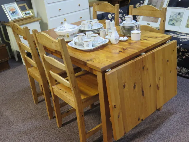 460. Matgrupp furu bord sidoklaff 4 stolar